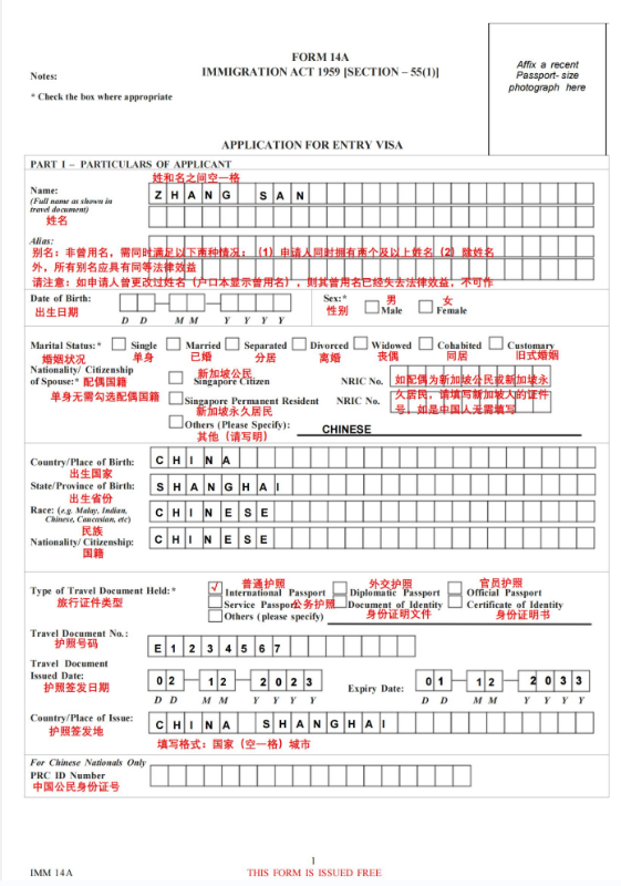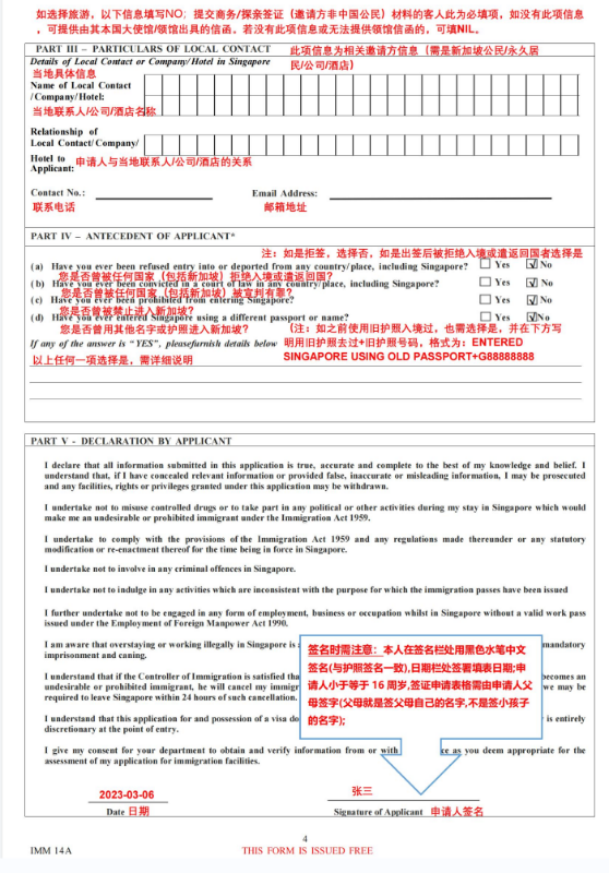 备注:签证申请表中年收入部分须填写新币,如申请人是儿童、退休人士、无固定收入的自由职业者或无业人员,请填写0;如是在职人员,须与在职的收入相对应(如果在职证明上面填写的是月薪,需要先按12个月计算然后按新币对人民币1:5的汇率计算,不包含年终奖);