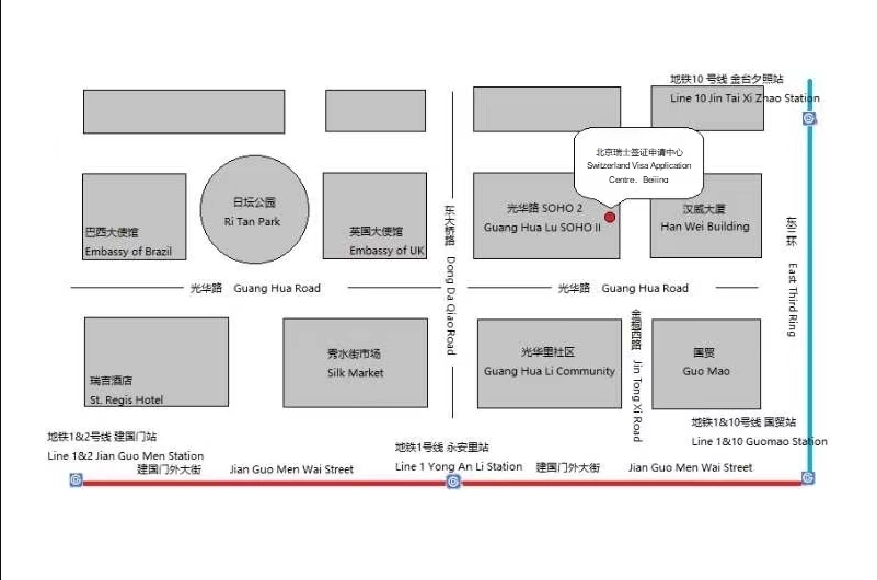 2、瑞士签证中心地址:北京市朝阳区光华路9号光华路SOHO二期B1层邮编100020,受理时间: 9:00至12:00 (周一至周五,节假日除外),需预约。