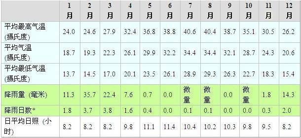 气候 迪拜属于亚热带干燥气候,阳光充沛,晴朗蔚蓝的天空全年可见。上好降雨量少且多集中在冬季。冬天气温在10-30℃,夏天最高约48℃ | 时差 阿联酋时间比格林威治时间快4个小时,比北京时间晚4个小时。 |