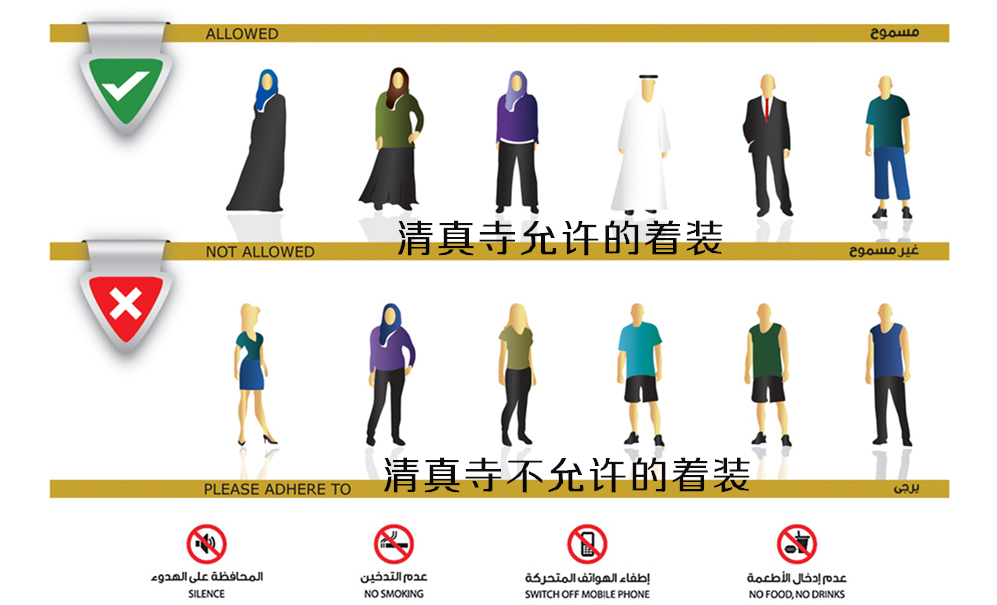 衣着 迪拜全年大多时候都以短袖或薄长袖衬衫为佳。但逢冬季以较厚之衬衫为宜,早晚可加一件夹克或毛衣。 由于阿联酋是伊斯兰国家,因此要求女士着装最好“保守”一点,吊带装、短裤、短裙等不宜。 由于迪拜全年阳光充沛,太阳眼镜是游客的必备之物。除此之外,防晒霜及遮阳伞或帽子是必备物品。 一年四季都必须避免穿着可能被认为不适当的或太过暴露的衣服,以免冒犯当地居民。 斋月期间,女士们要尽量注意穿长袖衣服和长裤,不要太暴露。 |