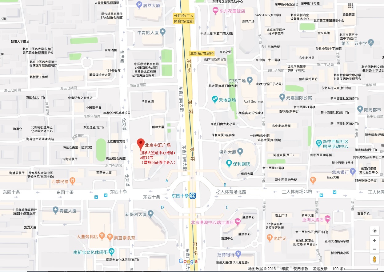 一、 北京加拿大签证中心地址: