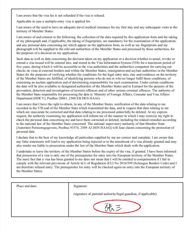 3、18周岁以下者由父母双方在签名栏处用黑色水笔签父母姓名。
